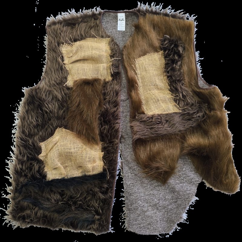 Popis produktu čertovská vesta premium hnědá Čertí vesta doplňuje perfektně vzhled klasického čerta, jak ho známe z našich pohádek. Tato je vyrobena z kvalitního plyše české výroby a dotvořena záplatami z juty. Materiál: 50% Polyester, 40% Akryl, 10% Juta
