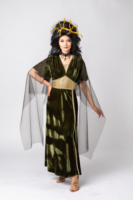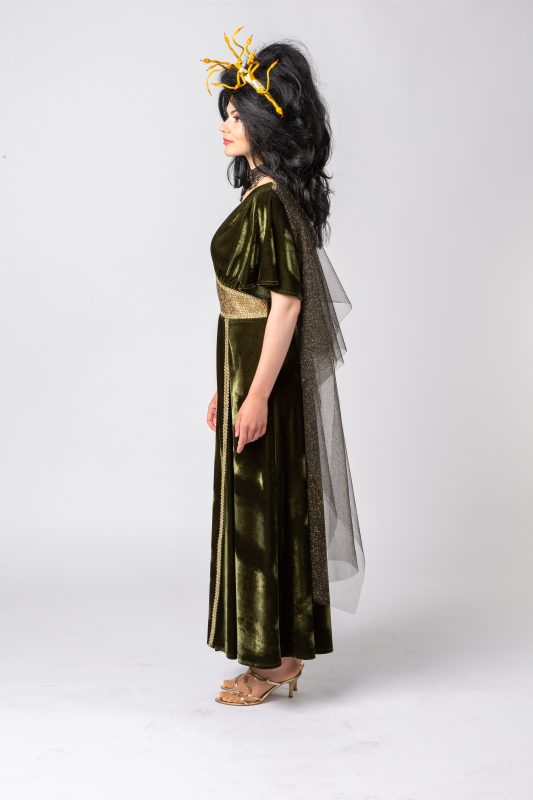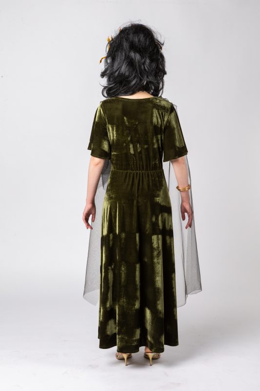 Dlouhé zlatozelené šaty se závojem jsou ideální volbou pro všechny pohádkové, orientální nebo fantasy kostýmy. Lesklý materiál vynikne na každé párty, plese či karnevalu a dodá nositelce noblesní a okouzlující vzhled. Šaty jsou pohodlné, lehké a díky jemnému závoji působí opravdu výjimečně.