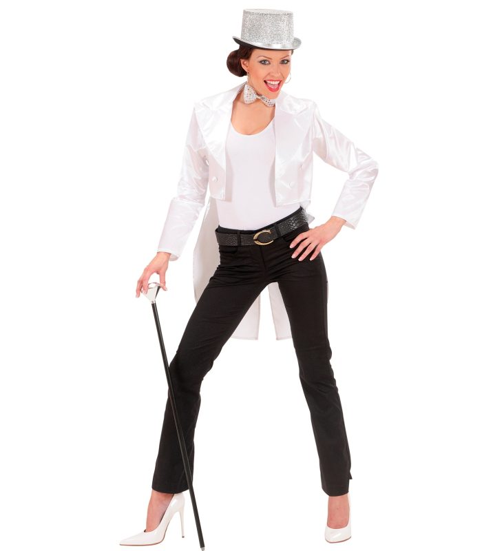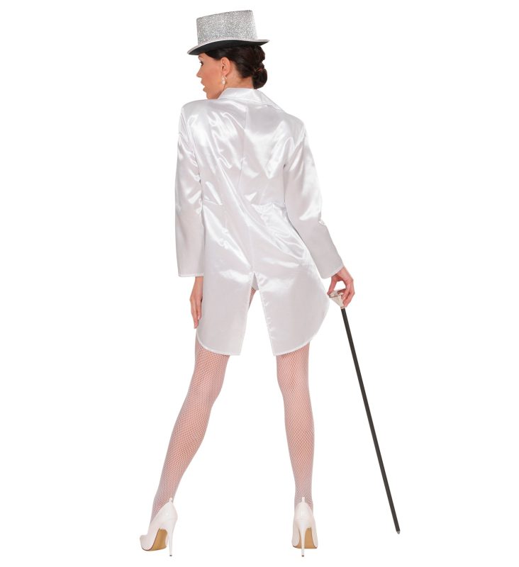 Dámský saténový frak v bílé barvě dodá vašemu outfitu eleganci a styl. Lesklý saténový materiál působí luxusně, zatímco střih fraku podtrhuje ženskou siluetu. Skvěle se hodí na karnevaly, maškarní bály, tematické večírky i divadelní představení. Frak lze kombinovat s kalhotami, sukní či kloboukem pro dokonale stylový vzhled.