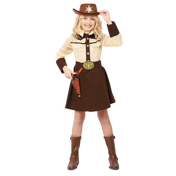 Popis produktu dívčí kostým kovbojka Sada obsahuje: - košili, - sukni, - pásek. Produkt je tmavě hnědý. Klobouk a pouzdro nejsou součástí balení. Materiál: 100% polyester.