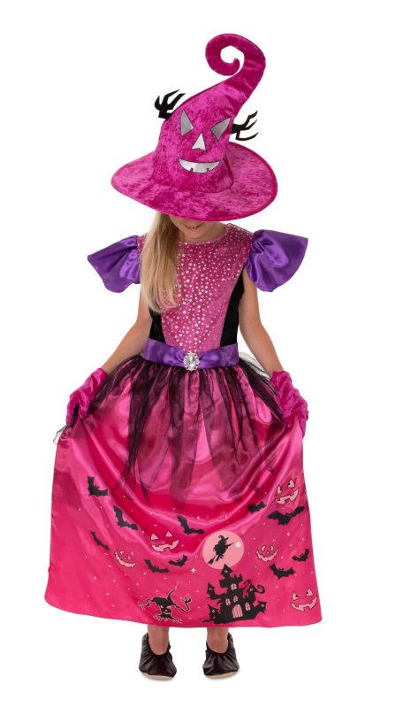 Halloweenský kostým pro malé čarodějnice s hravým designem,