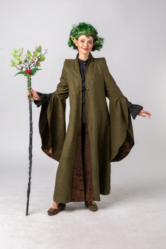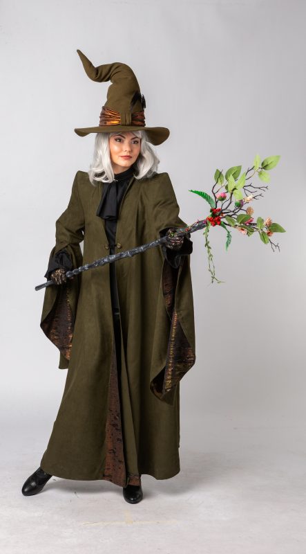 Hůl v dřevěném vzhledu s umělými listy a květy, cca 1,50 m