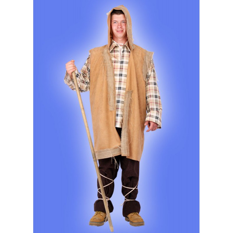Popis produktu karnevalový kostým pastevec DOSTUPNÉ VELIKOSTI: 48, 50, 52, 54, 56, 58 a 60. OBSAHUJE: košile, vesta s kapucí, kalhoty. MATERIÁL: počesaný polyester, bavlna, juta.