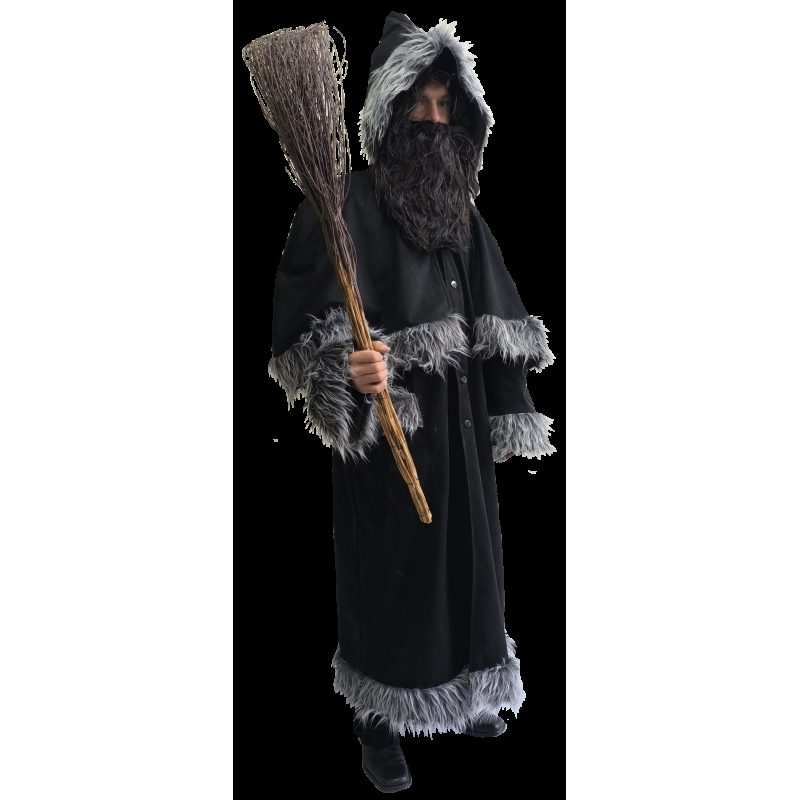 Obsahuje dlouhý tmavý plášť s kapucí nebo kožešinovým lemem, provaz na převázání pasu a doplňky jako pytel nebo hůl. Ideální volba pro Mikulášskou nadílku, adventní akce, průvody nebo pohádková vystoupení.