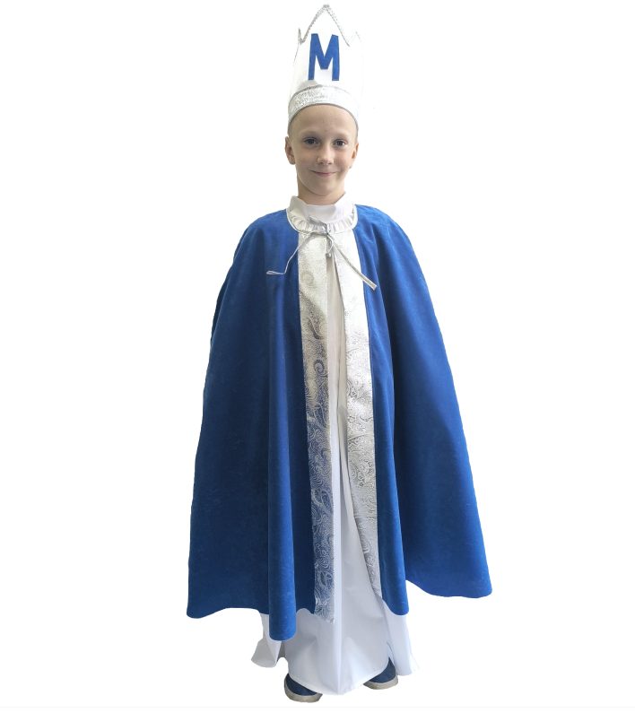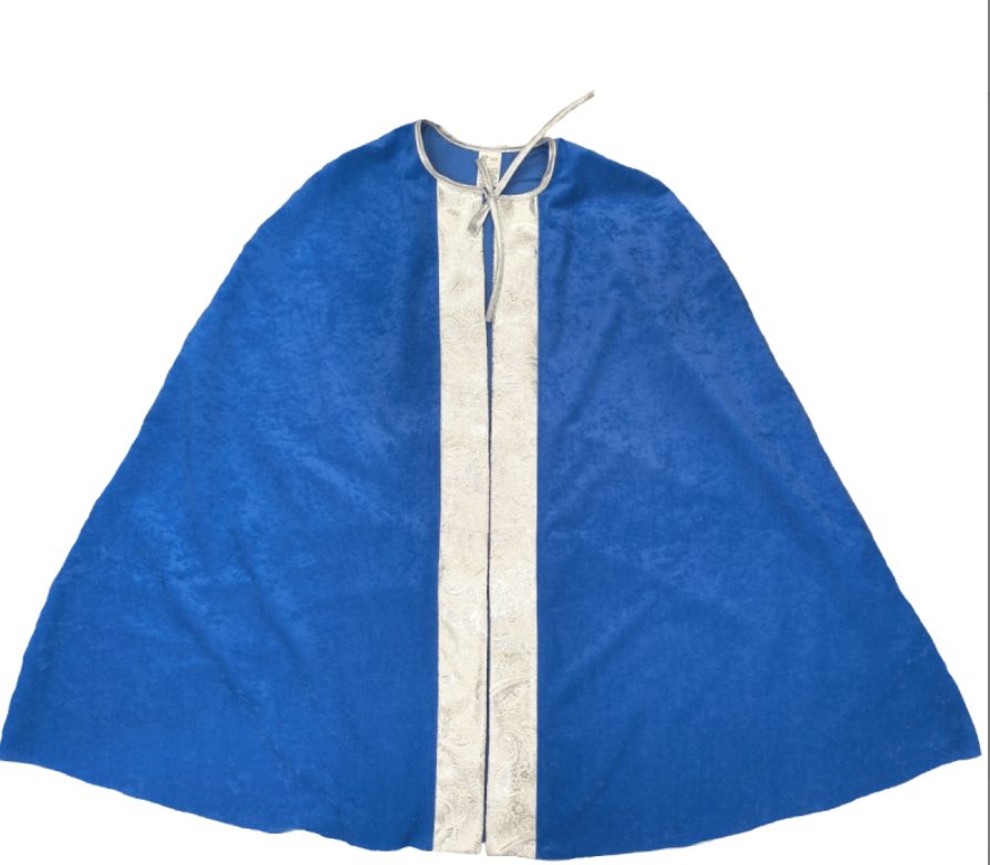 Elegantní modrý plášť pro krále Melichara z tradiční trojice Tří králů. Dlouhý, splývavý plášť s ozdobným lemováním působí slavnostně a důstojně. Skvělá volba pro betlémy nebo kostýmové průvody. Vyroben z kvalitní látky, příjemné na nošení a s krásným sytým odstínem modré.