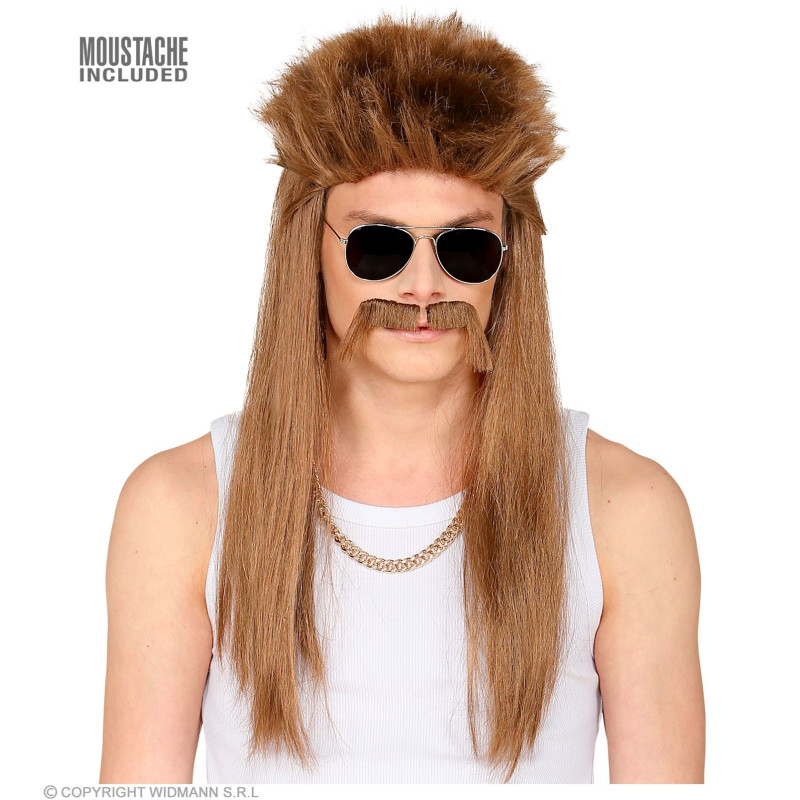 Popis produktu pánská paruka s knírkem 80.léta Paruka Redneck,paruka s knírem amerického venkovana, 80´léta. Paruka vhodná nejen jako doplněk k rokerskému kostýmu.