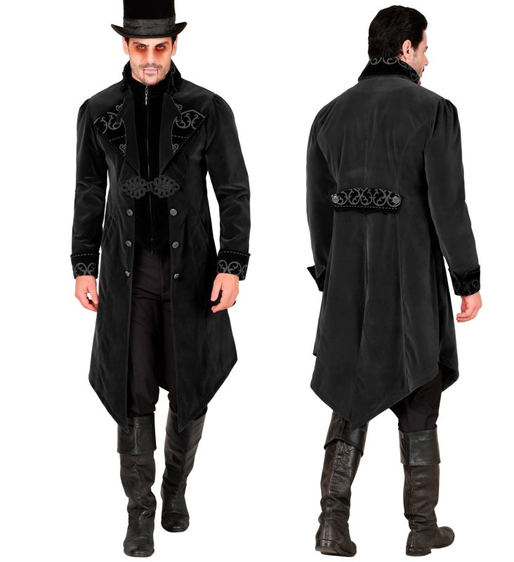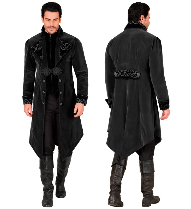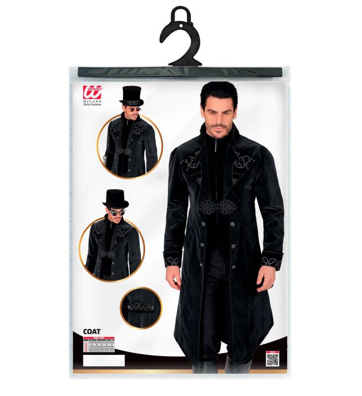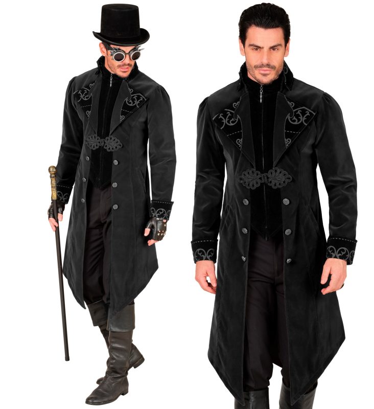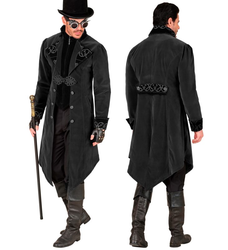 Pánský černý sametový kabát ve steampunk stylu je skvělou volbou pro milovníky elegance a retro módy. Hodí se na karnevaly, cosplay akce, historické slavnosti i tematické večírky. Hebký samet působí luxusně, zatímco stylové knoflíky a střih dodávají autentický steampunk vzhled. Perfektně ladí s cylindrem, brýlemi a dalšími doplňky.