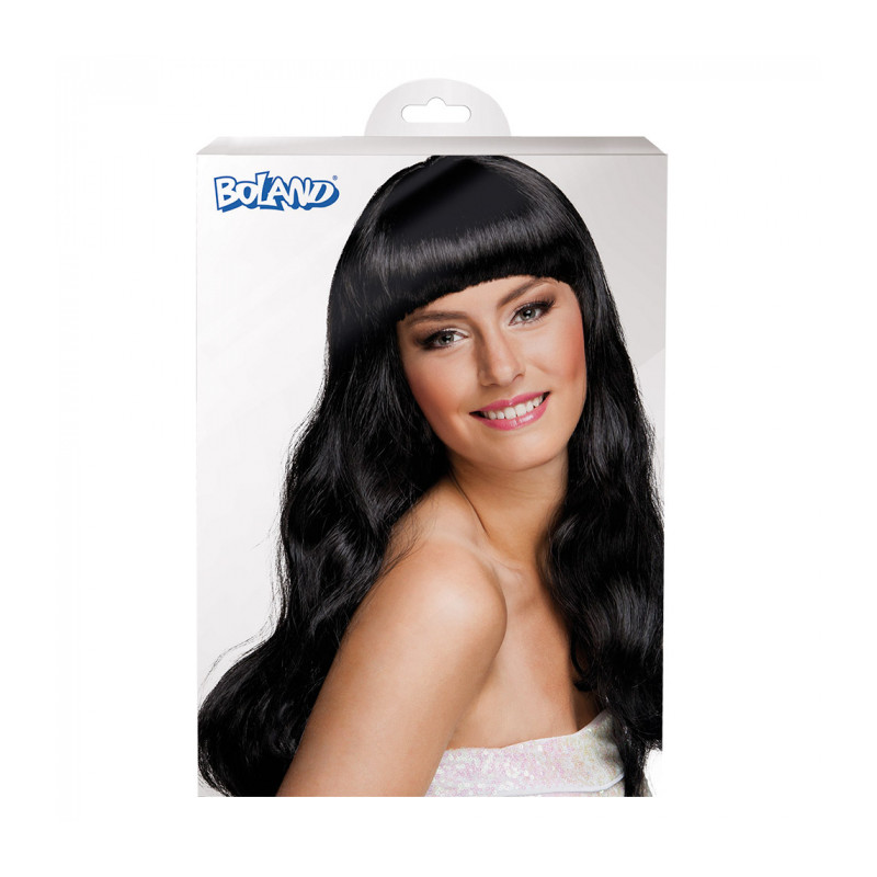 Popis produktu paruka dlouhá černá Dámská paruka Chique, přirozený vzhled. Barva: černá Materiál: 100% polyester Určeno pro: dámská Typ paruky: dlouhá, vlnitá s ofinou