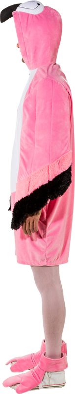 Originální růžový kostým plameňáka s kapucí a zobákem je ideální na karneval, párty nebo tematické oslavy.